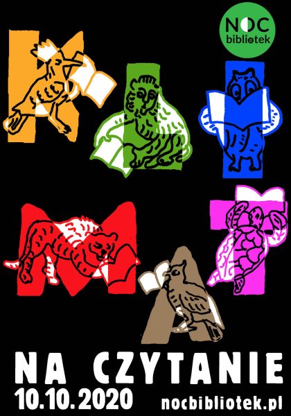 Plakat kolorowy, zaproszenie na Noc Bibliotek